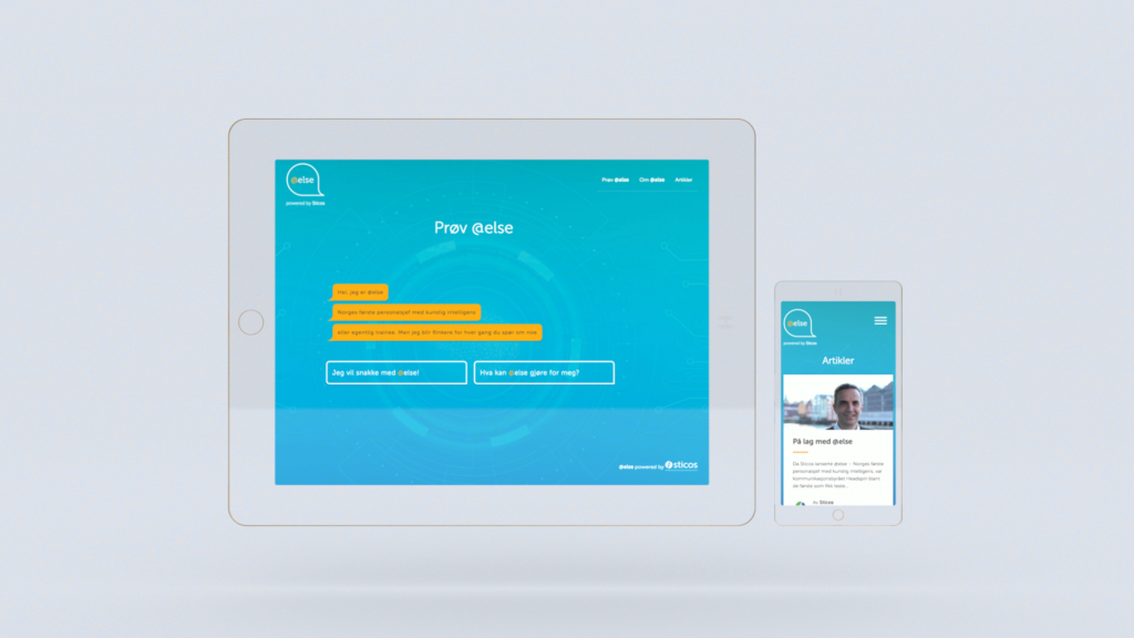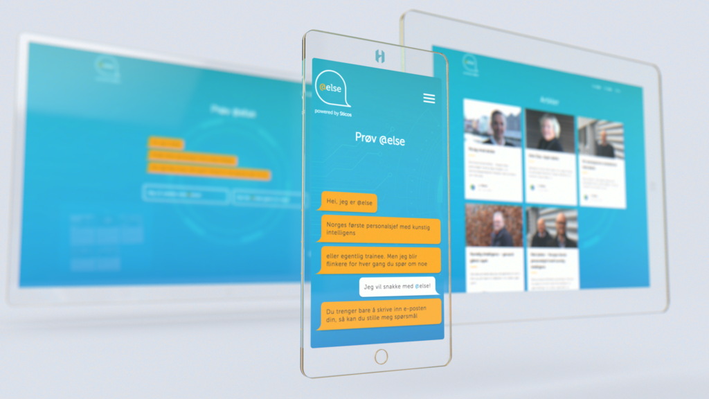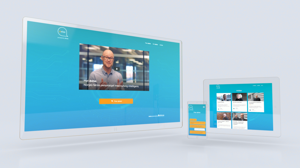 Kunder som bruker Sticos Personal, får @else med som en del av tilbudet. Men i stedet for å legge henne på nettsidene til Sticos på linje med andre produkter, valgte vi å gi henne en egen landingsside der brukerne kunne stille spørsmål og oppleve henne «live». Det ga mer tyngde til selve lanseringen, og det ble enklere å snakke både om og med @else når hun hadde sitt eget hjem.