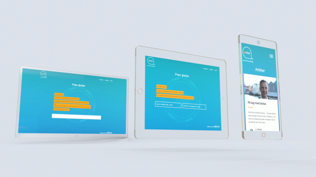 Headspin fikk i oppgave å visualisere @else samt bistå med lanseringen, og vi har blant annet utviklet else.sticos.no – en nettside hvor det er mulig å chatte med @else. Vi har også gjort en del pressearbeid, opprettet egne sosiale kanaler for @else samt utviklet innhold til nevnte kanaler. I tillegg har vi utviklet messestands, t-shirts, bannere og annonser for @else.