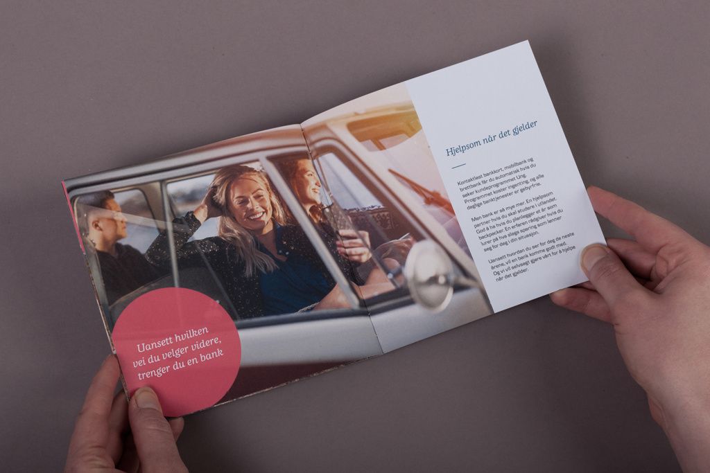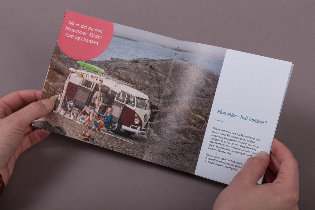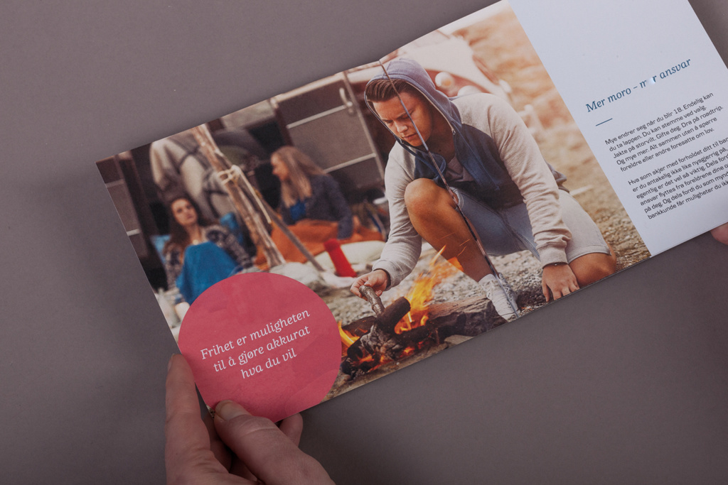 Budskapet var delt. For det første fortalte vi konkret hva som automatisk skjedde med kontoer og kort. Ønsket de mer informasjon kunne de gå inn på en oppdatert informasjonsside på nett. I tillegg ble de invitert til en privat samtale med en rådgiver i banken, gjerne sammen med foreldre/foresatt.