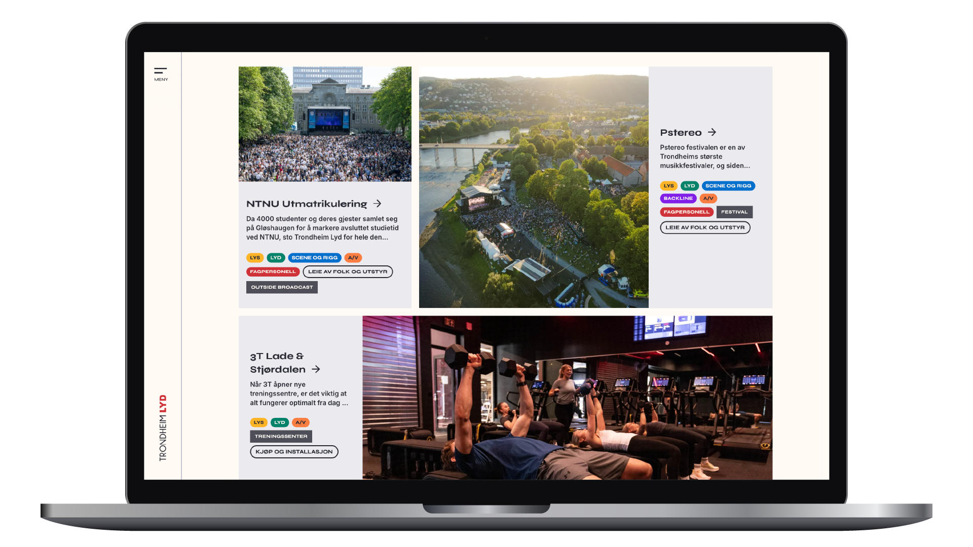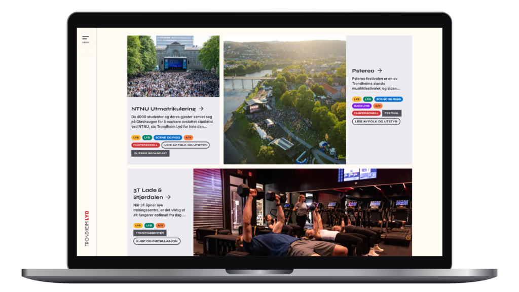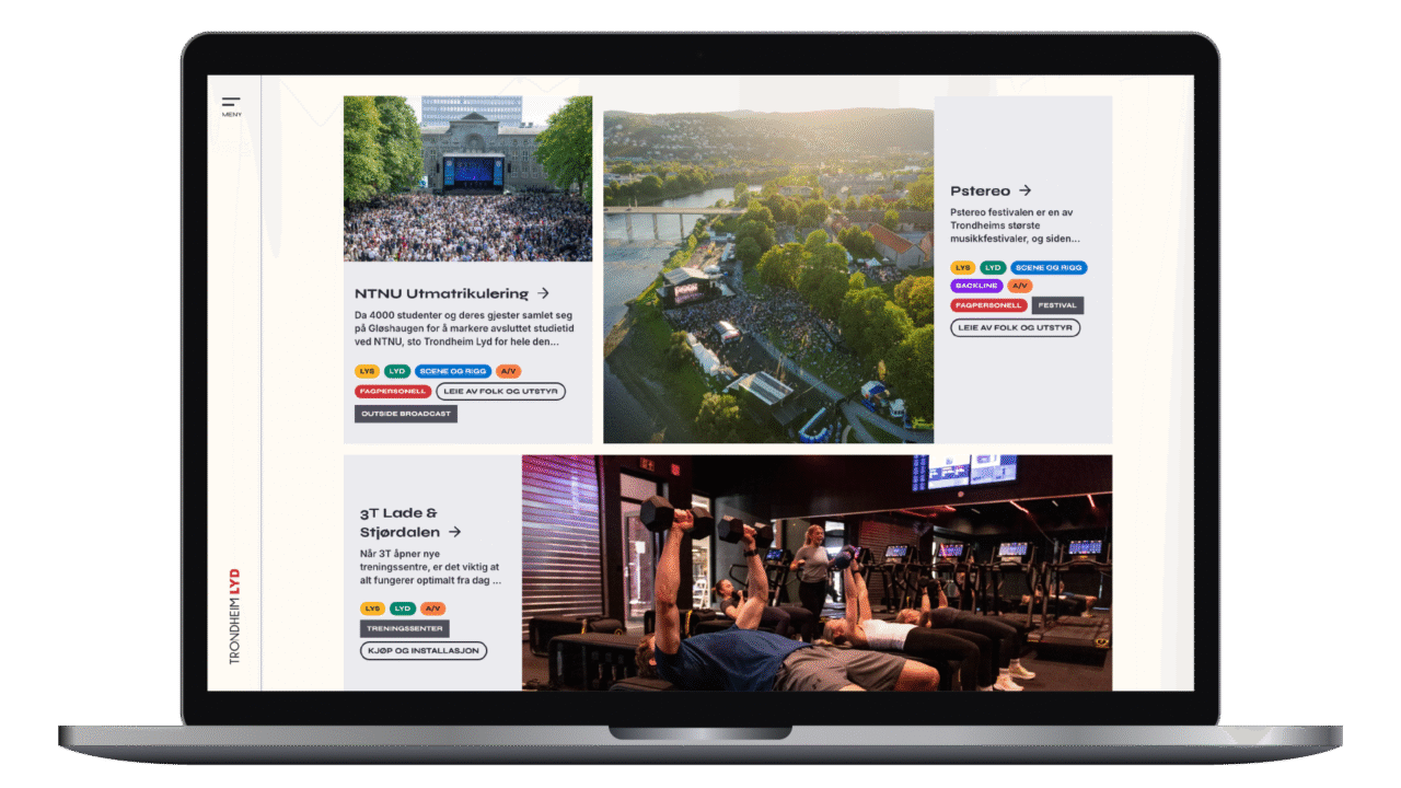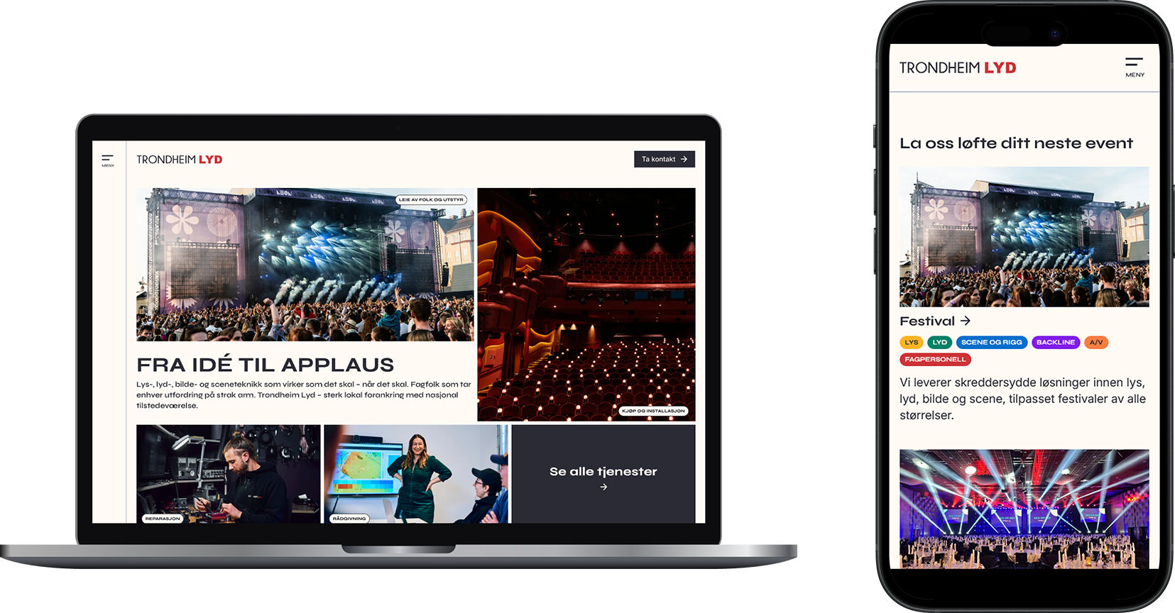 Trondheim Lyd er en av landets største leverandører innen lyd-, lys- og sceneteknikk. Selskapet leverer alt fra festivaler og konserter til installasjon og verkstedtjenester, og er kjent for kvalitet, presisjon og rask respons. Samtidig var det behov for å gjøre bredden i tilbudet mer synlig og lettere å forstå for kundene.