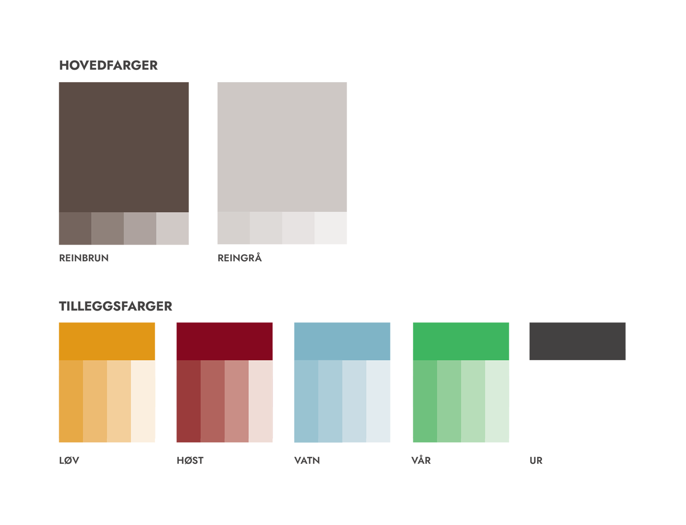 Det oppfordres særlig til å matche logofargene reinbrun og reingrå med én tilleggsfarge, i forskjellige nyanser, heller enn å bruke mange av tilleggsfargene samtidig.