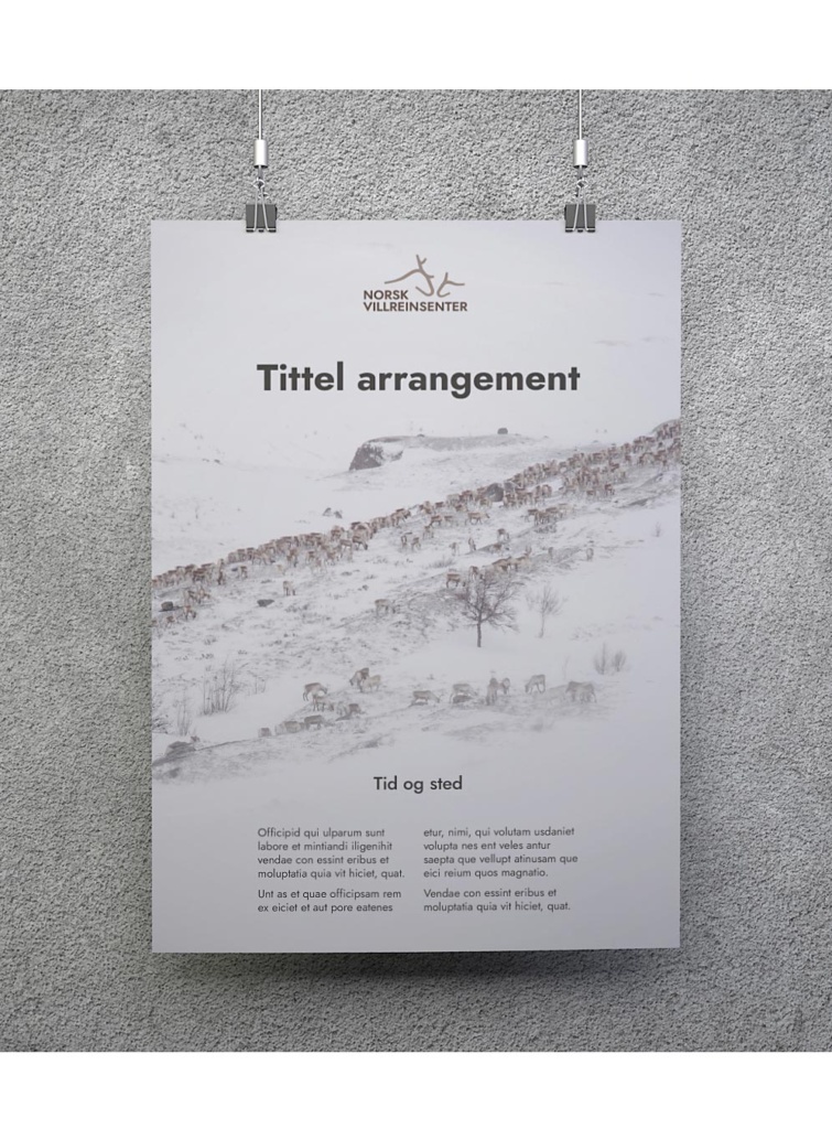 Vi har laget maler for Word (brevmal, rapportmal etc.), Powerpoint, e-post, infoplakater og sosiale media. Se for eksempel profilen i bruk på Norsk villreinsenters Instagram-profil.