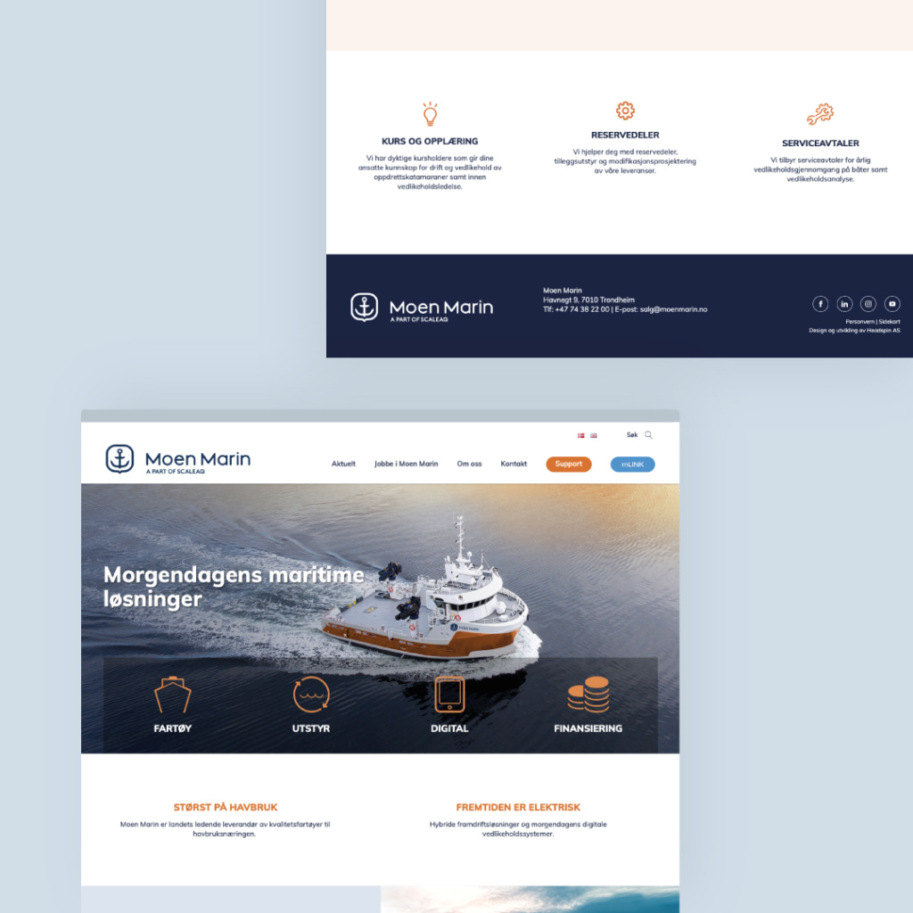 Ny nettside, redesign av logo og grafisk profil for Moen Marin