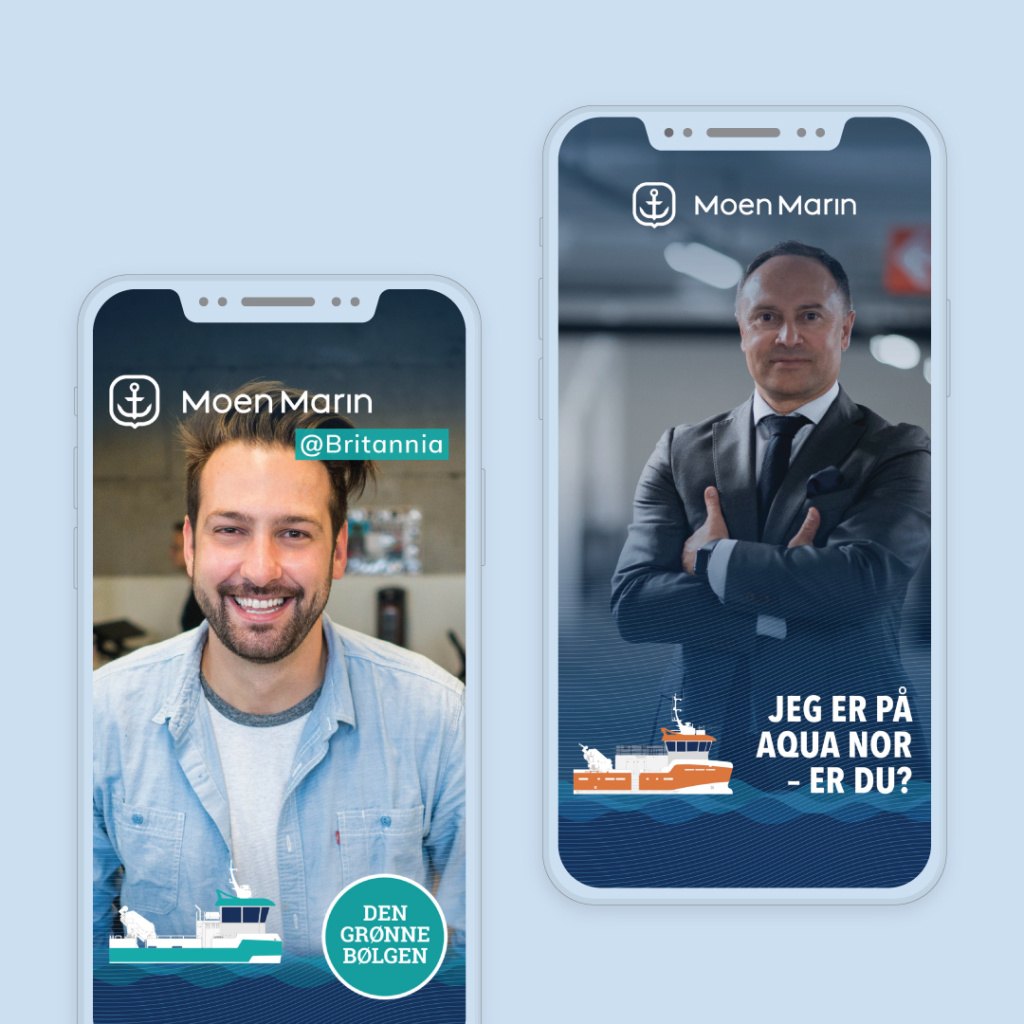 Til Aqua Nor utviklet vi egne filtre for Snapchat med geolokalisering rundt arrangementsområdene.