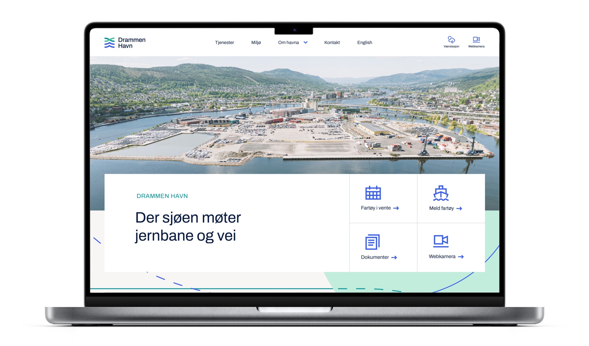 Vi fikk i oppdrag å utvikle en ny identitet som gir Drammen Havn en tydeligere stemme, som en selvstendig, strategisk og fremtidsrettet aktør i norsk logistikk.