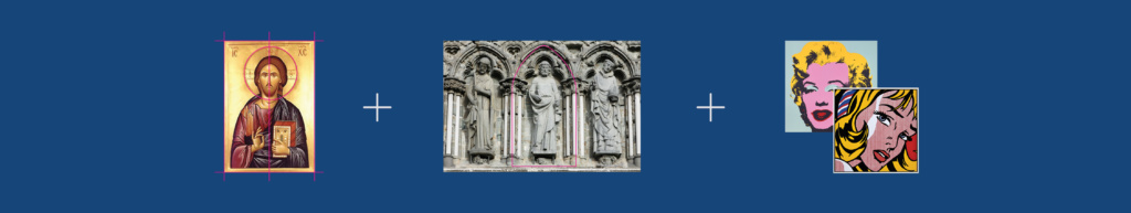 Dette tok vi med oss inn i konseptutviklingen. Vi hentet form fra Vestfronten på Nidarosdomen, kombinerte denne med elementer fra Pop art – den dominerende kunstretningen i USA på 1940- og 50-tallet – og fikk på den måten et ikonbilde av Olav/Hivju, som tydelig viser to sider.
