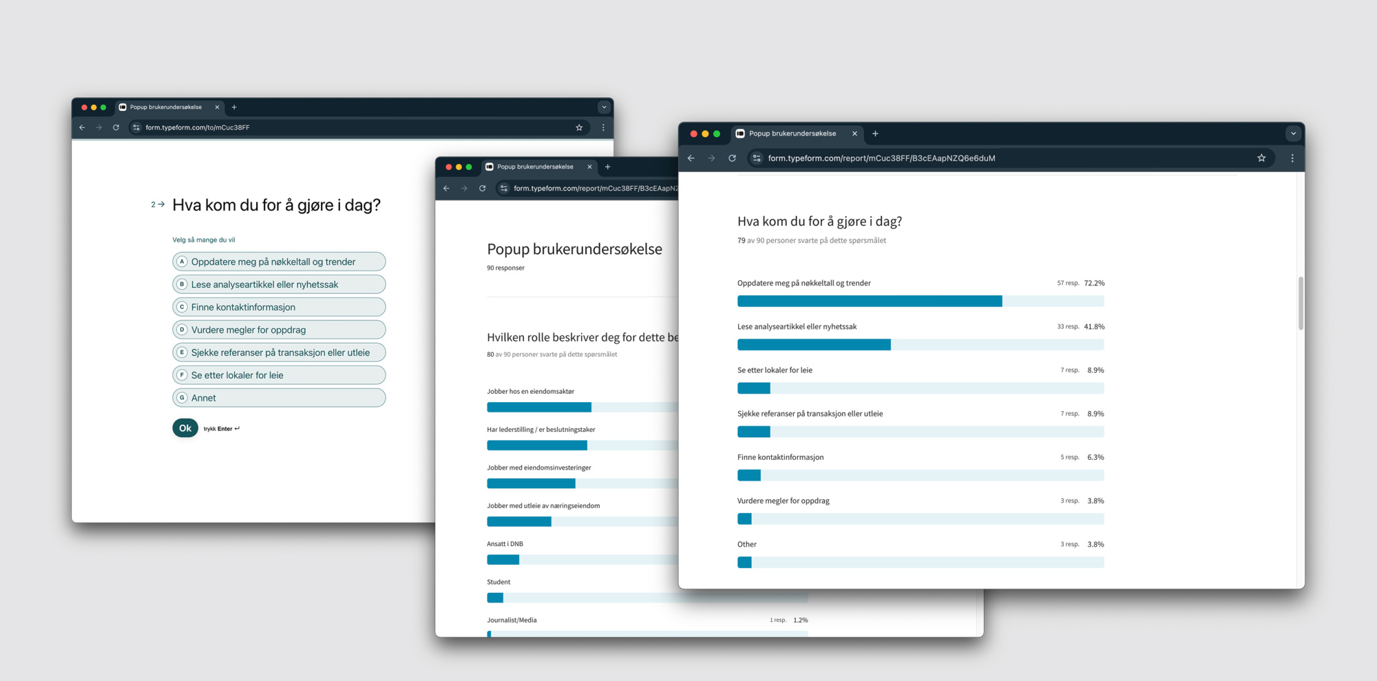 Næringsmeglingsbransjen er en tung bransje å gjøre innsiktsarbeid i. Det er konfidensialitet rundt hvordan man jobber, og med hvem. Men innsikt var definitivt nødvendig, og derfor gjennomførte vi en spørreundersøkelse.