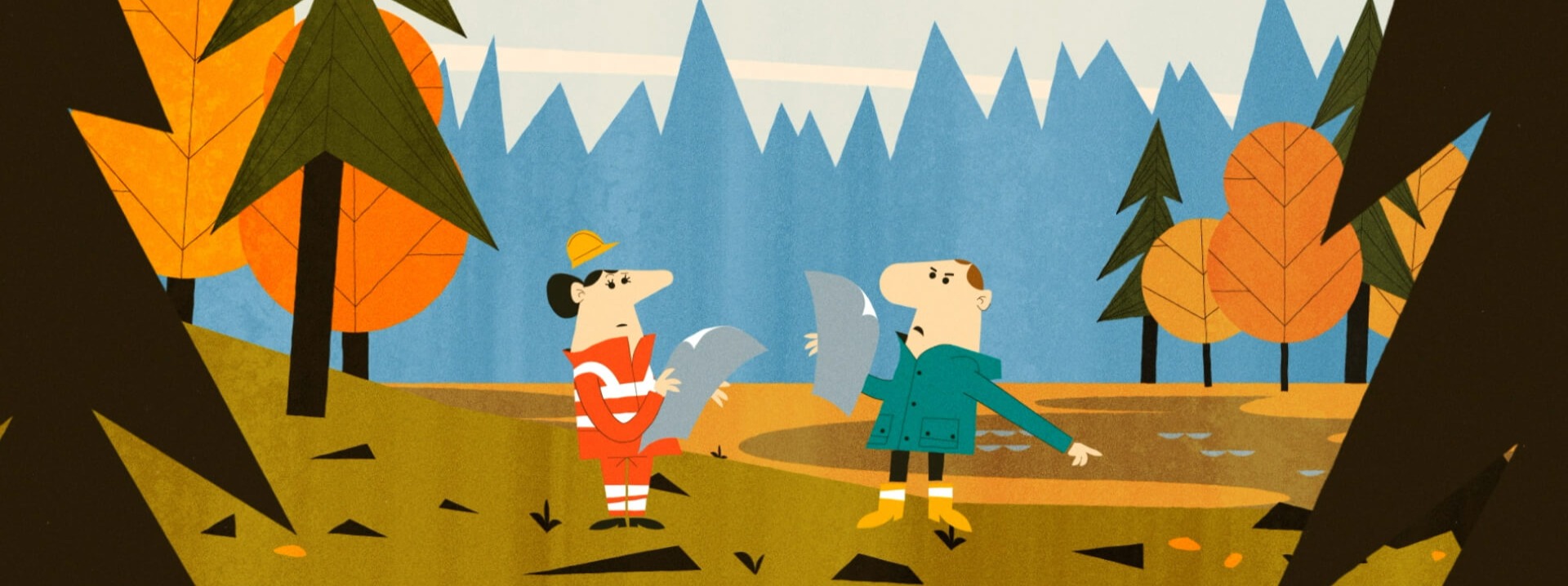 2D-animasjon er det klassiske animasjonsuttrykket. Det handler om figurer og elementer i to dimensjoner – høyde og bredde – ofte med et stilisert, grafisk preg. Tenk tegnefilmer, forklaringsfilmer og motion graphics.
